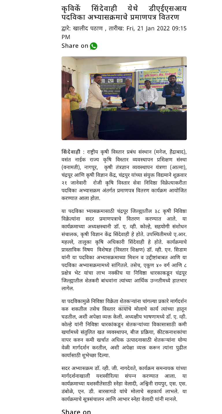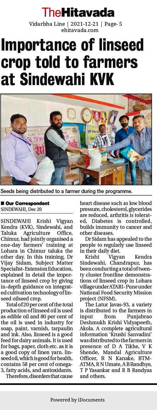 Krishi Vigyan Kendra, Sindewahi, Chandrapur