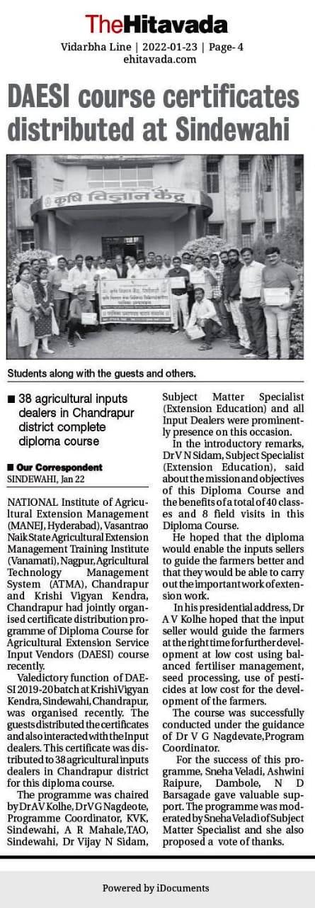 Copyright © 2026 Krishi Vigyan Kendra, Sindewahi, Chandrapur